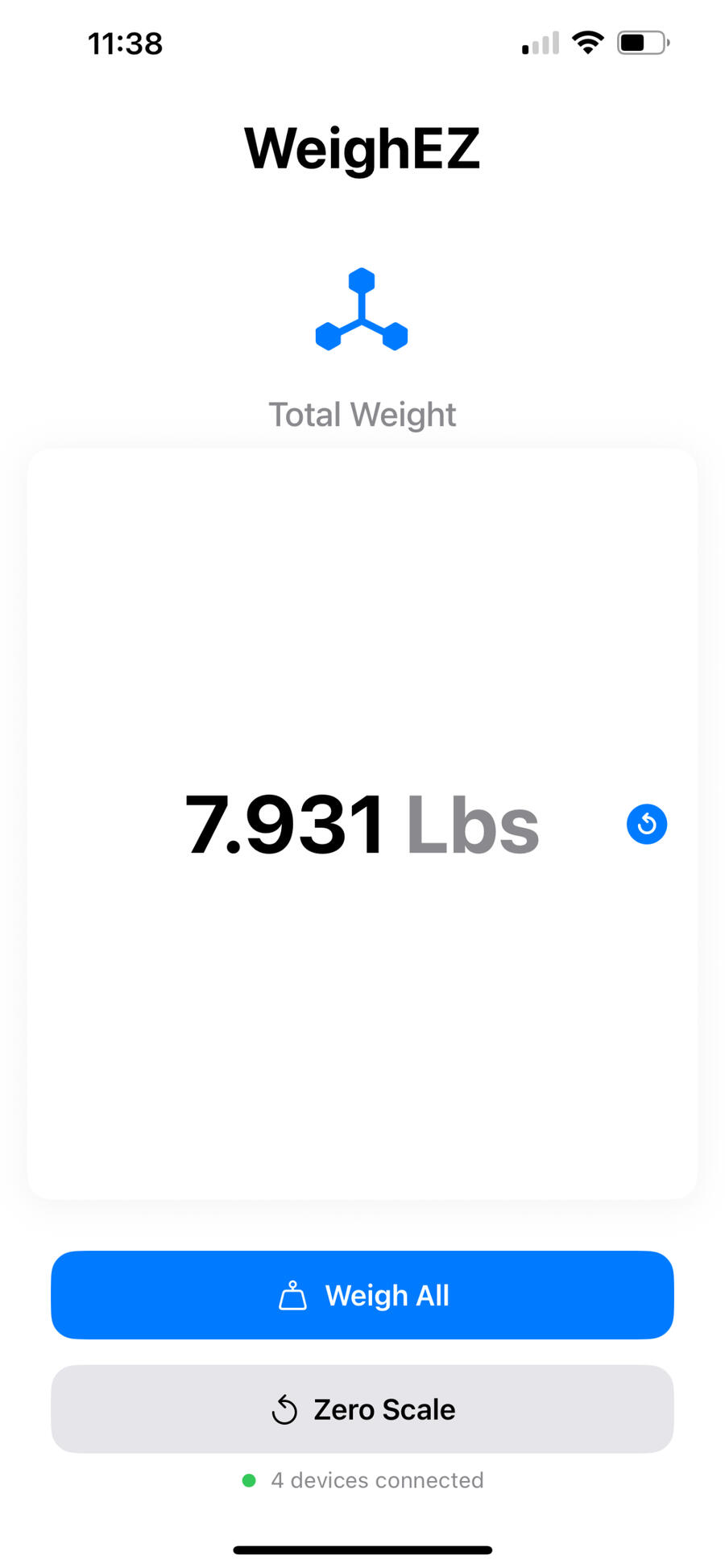A set of four scales can weigh up to 1600 Pounds.
